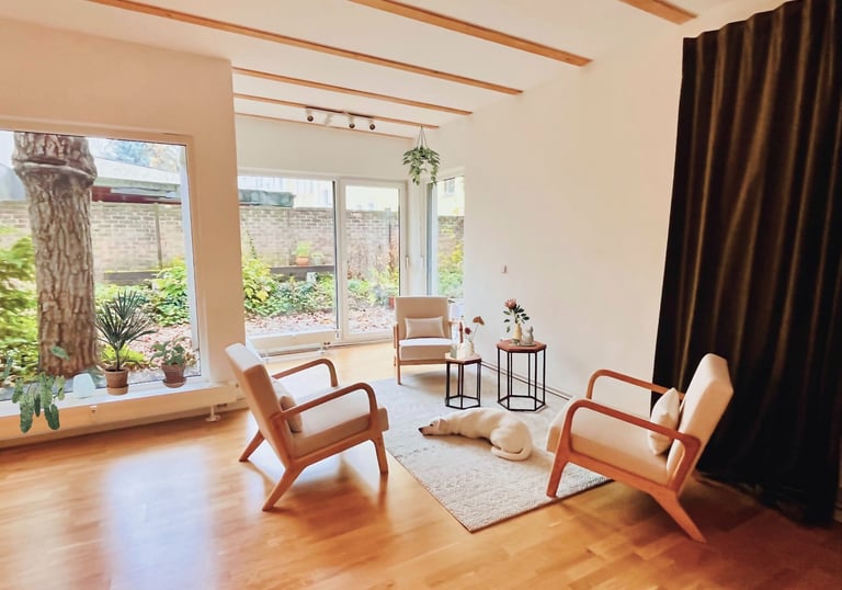 Idyllisch und ruhig - und doch mitten in Neukölln - liegt die Praxis in einer Remise im Hinterhof mit Terrasse und kleinem Garten.